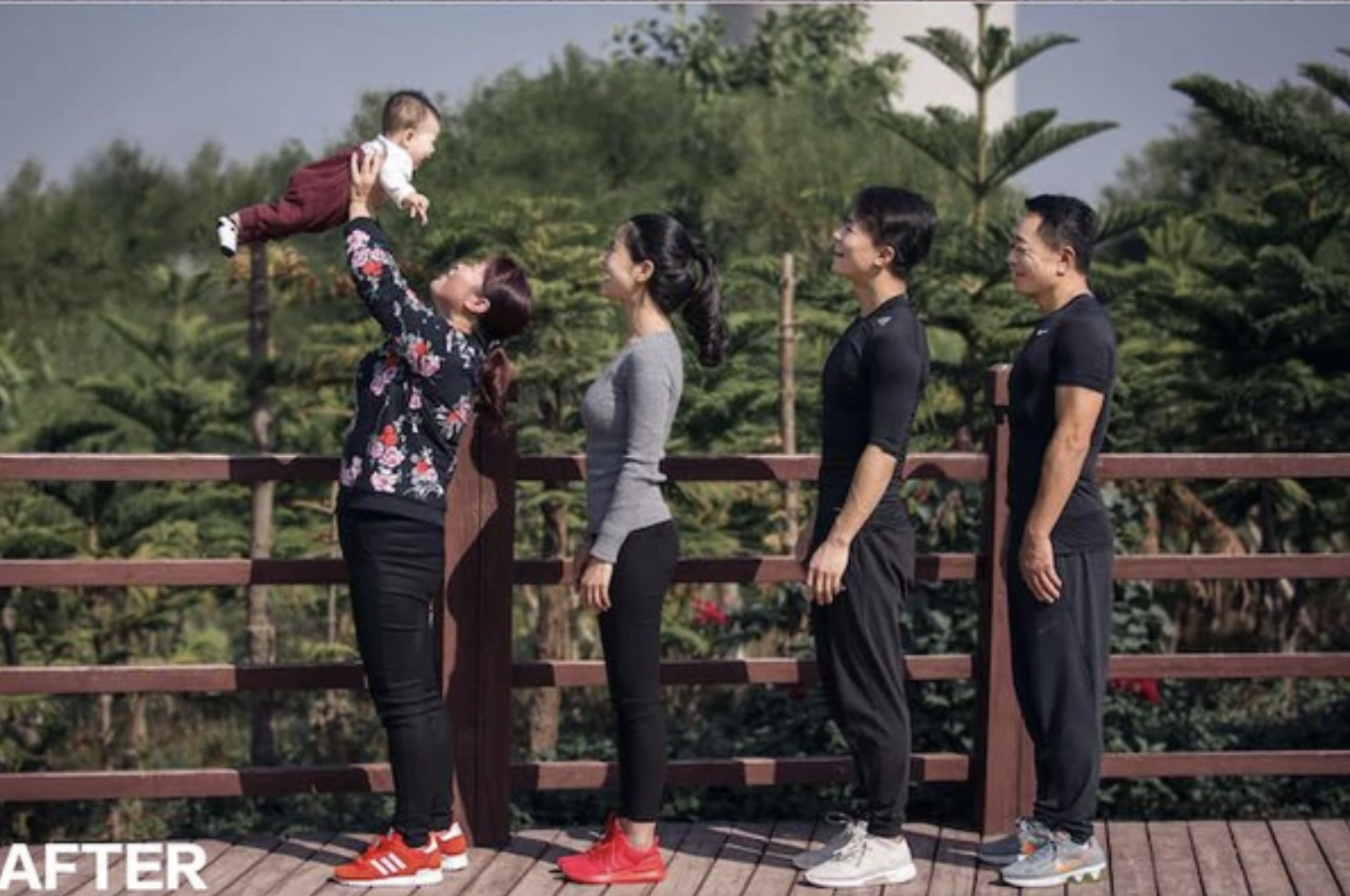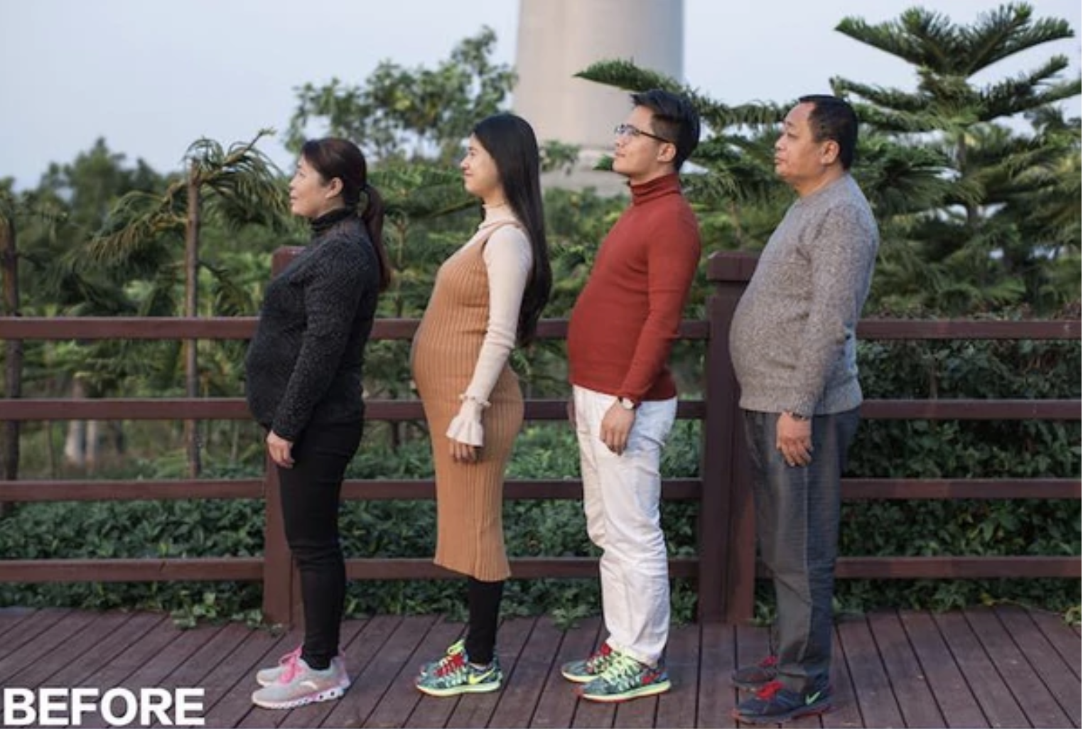 Oriundos de Xiamen, en la provincia de Fujian y al sudeste de China, este grupo de parientes se propuso cambiar de estilo de vida y adoptar costumbres saludables a través del ejercicio físico y la dieta. La idea fue de Jesse, un fotógrafo de 32 años, que animó a sus padres y su esposa a seguir la iniciativa. Y el plan terminó siendo un rotundo éxito que se difundió rápidamente por las imágenes en las que el joven registró los progresos.