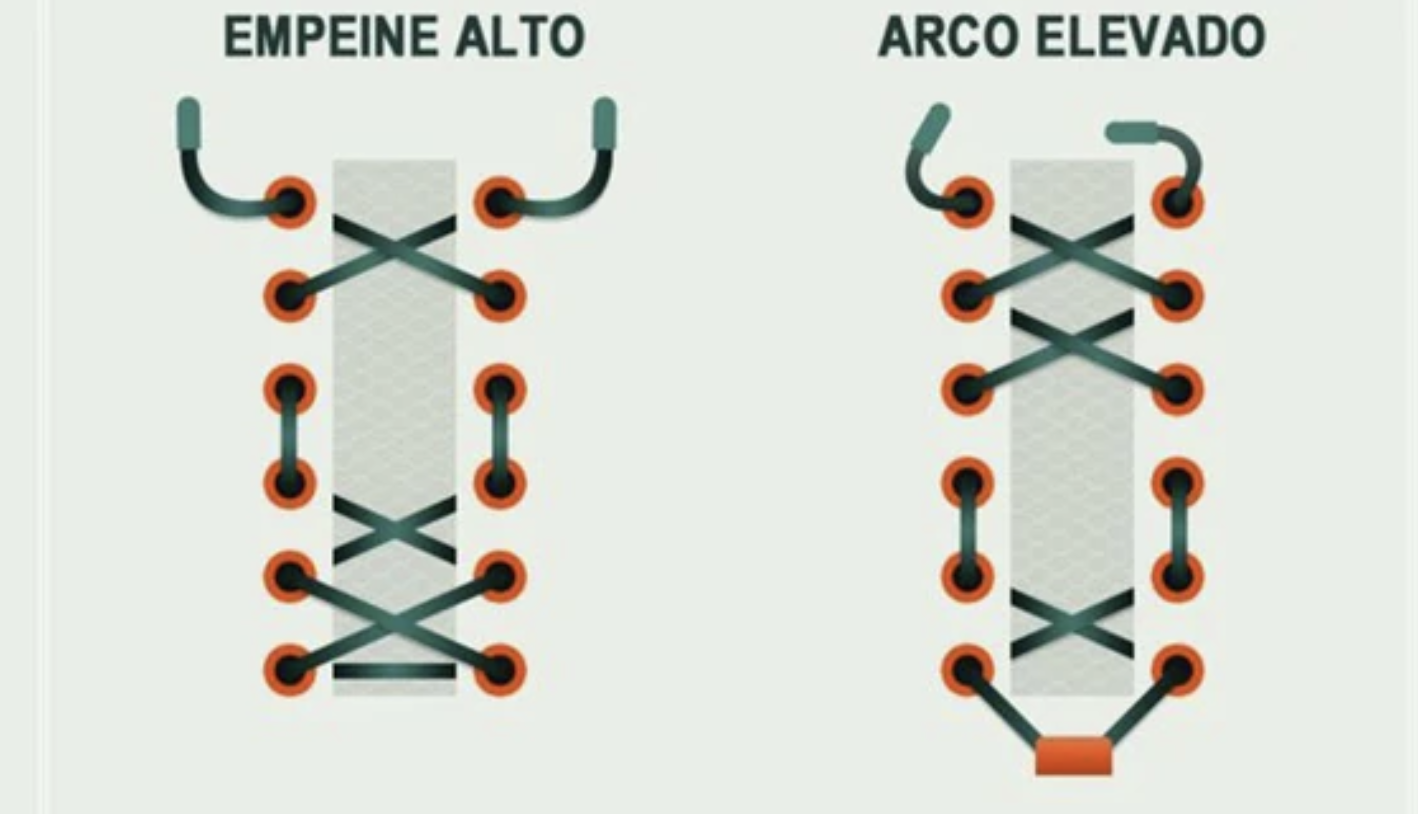 Estas dos llevan a saltar el enlace cruzado entre un par de orificios para aliviar la presión sobre el área. Simplemente de debe localizar la zona en la que la lengüeta o el upper de la zapatilla genera la presión y evitar cruzar los cordones por encima, llevándolos por los lados. Son útiles en especial para pronadores.