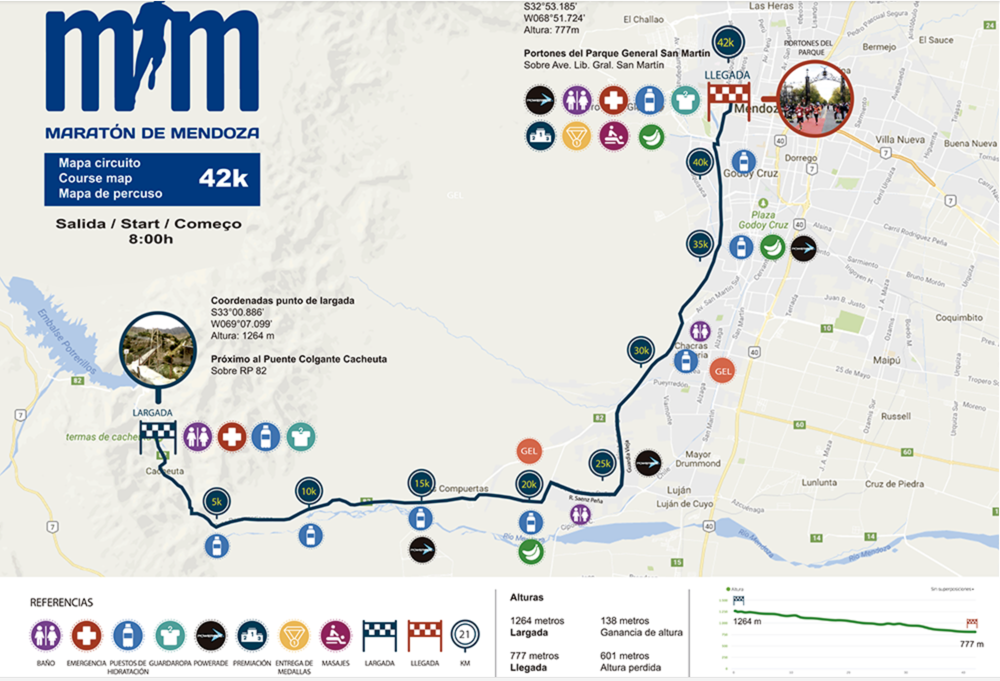 - Localiza la línea de salida, el guardarropa y cómo llegar hasta allí: mañana por la mañana vas a estar un pelín estresado, así que la noche anterior deberías mirar cómo llegar hasta la línea de salida y hasta el guardarropa, si es que vas a utilizarlo. ¿Taxi? ¿Auto? ¿Colectivo? Tene en cuenta los cortes y la circulación y los horarios.