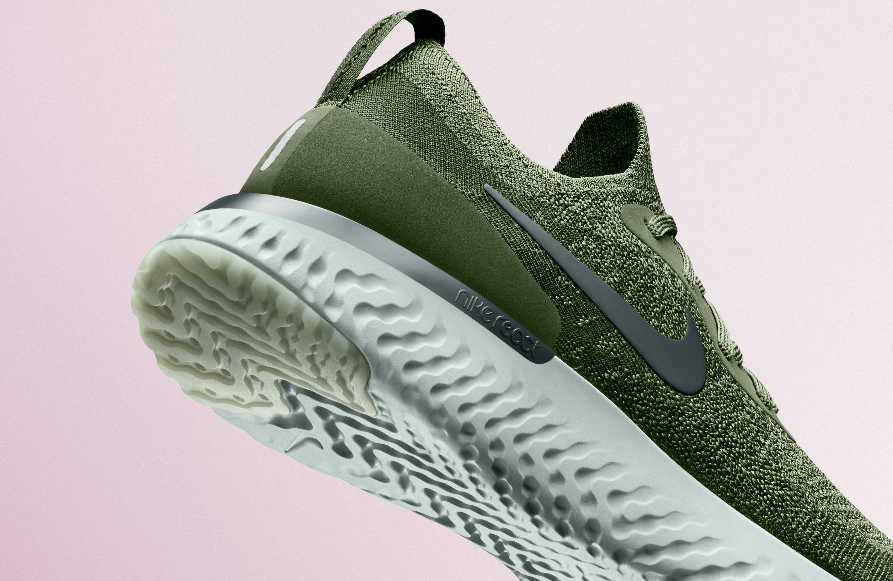 El diseño de la zapatilla sigue conformado por una espuma de una sola pieza, sin cemento ni pegamento, garantizando al usuario una transición suave y mejora la sensación en la planta del pie. Además de las ya comentadas Epic React Flynkit, abril trae consigo también un nuevo modelo: las Nike Odissey React un modelo con la misma espuma React, con una capellada de engineered mesh.