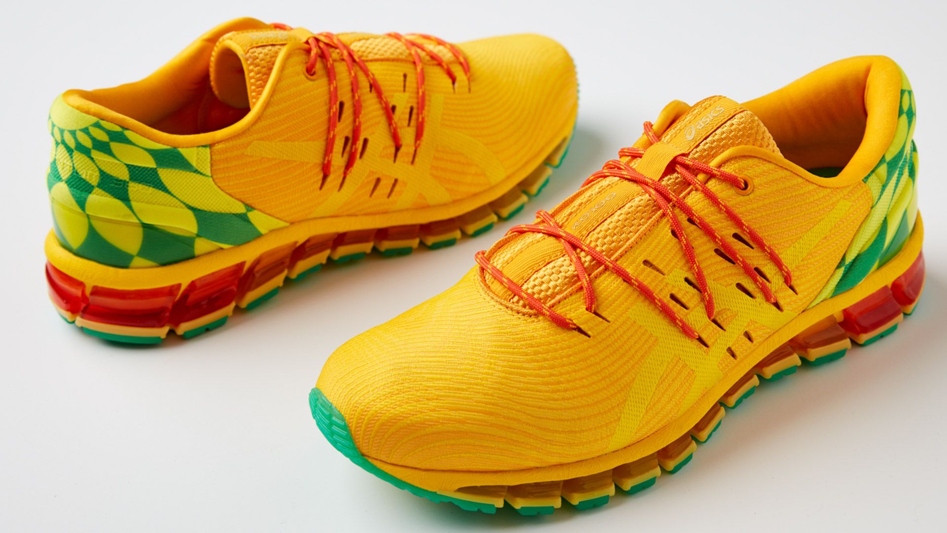 Diseñada con tecnología de amortiguación ASICS Gel de 360 grados, la Gel-Quantum 360 Ko100 para hombre y mujer aúna alto rendimiento y comodidad. El diseño del talón está inspirado en el "himawari" (girasol en japonés). La suela de goma y la parte superior están diseñadas en tonos amarillos y naranjas para imitar la gama de colores de los girasoles. Disponible a partir de 120€. Edición limitada de 1918 pares en todo el mundo.