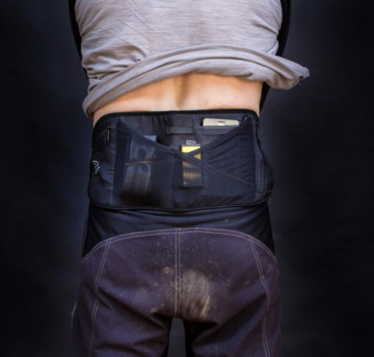 De la misma manera, RaceFace ofrece su propio sistema de transporte. La idea consiste en unos pantalones cortos con un espacio en la parte trasera, además de otro en la zona de los riñones.
