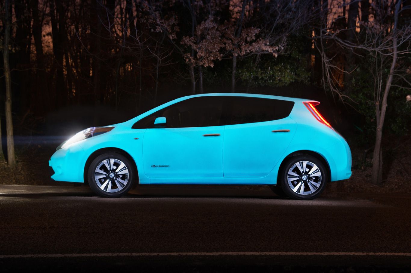 Nissan se asoció con un inventor para crear una pintura que emplea energía ultravioleta que se absorbe durante el día para brillar en la noche. Y la probó nada menos que en el LEAF, su vehículo 100% eléctrico.