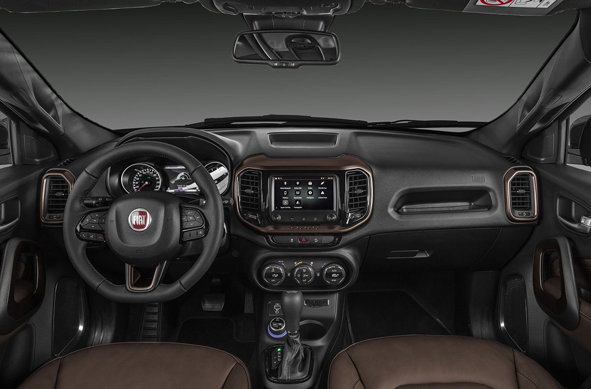 La Fiat Toro Ranch también posee luces antiniebla que se ajustan para iluminar el camino en las curvas, faros delanteros DRL y apoyabrazos traseros. Esta versión también está equipada con sensor de lluvia, cámara de marcha atrás, sensor crepuscular, espejo retrovisor interno electrocrómico, así como el ajuste eléctrico del asiento del conductor, con ocho posiciones disponibles. Se accede a la Toro Ranch a través del sistema Keyless Entry ‘N’ Go (sin llave) y arranque eléctrico a través del botón en la consola o de forma remota.