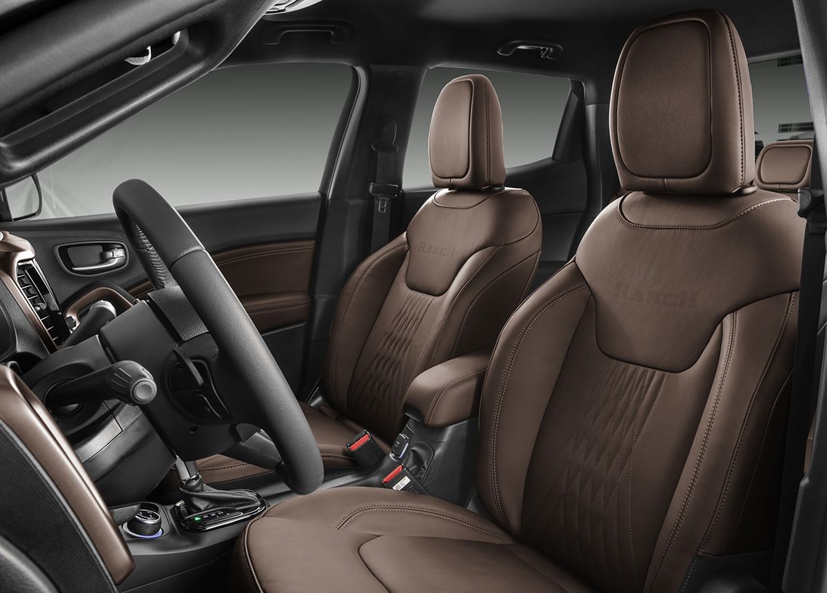 El interior del vehículo se destaca por el diseño de sus asientos de cuero marrón, con el logotipo “Ranch” grabado en los respaldos delanteros, que le confieren refinamiento y elegancia.