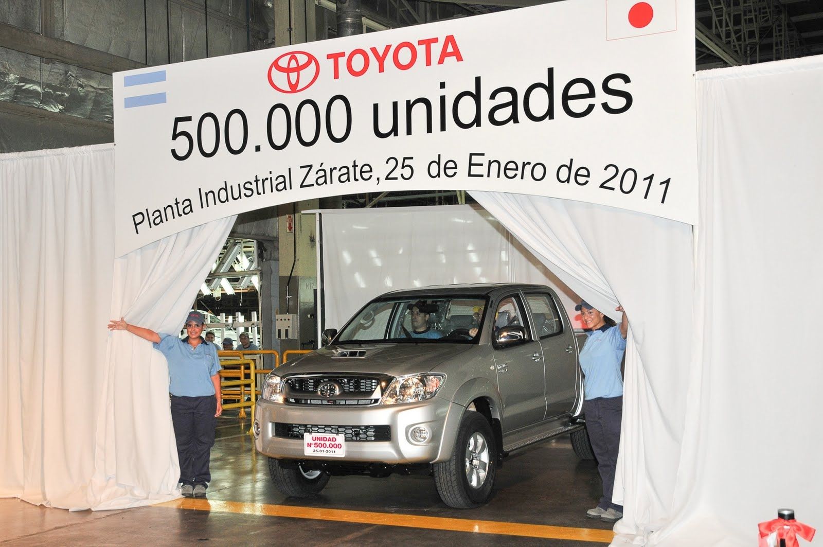 El 25 de enero del 2011, a las 15 horas, salió de la línea de producción una unidad Hilux doble cabina 4×4 SRV color gris plata. Llevaba el número de serie 500.000.