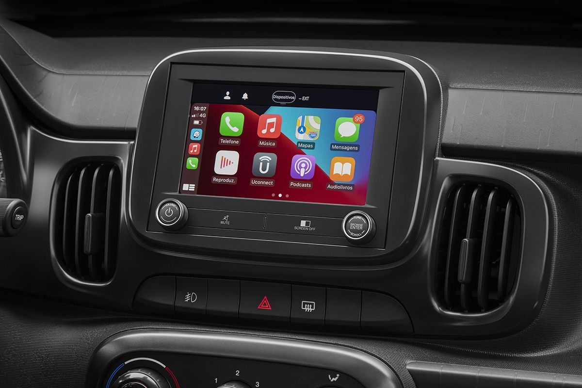 En el interior estos cambios también se ven, con el nuevo logo en el volante, pero sobre todo con con la nueva central multimedia de 7 pulgadas con Android Auto y Apple CarPlay, la misma que aquí se estrenó con la nueva Strada. Esta pantalla se ofrecerá como opcional en Brasil.