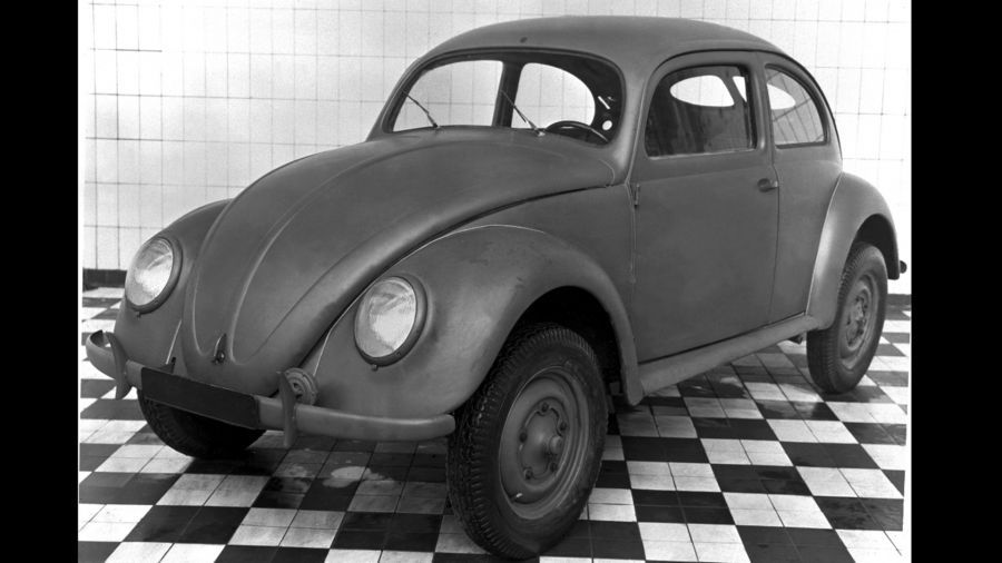 El pequeño automóvil de dos puertas había sido pensado originalmente como un ambicioso proyecto del nazismo, pero desde 1939 en adelante, la planta de Wolfsburgo se reconvirtió para producir armamento en vez de vehículos. De hecho, hasta el final de la Segunda Guerra Mundial, apenas 630 unidades salieron de la planta alemana del modelo rebautizado en 1938 como KdF-Wagen.