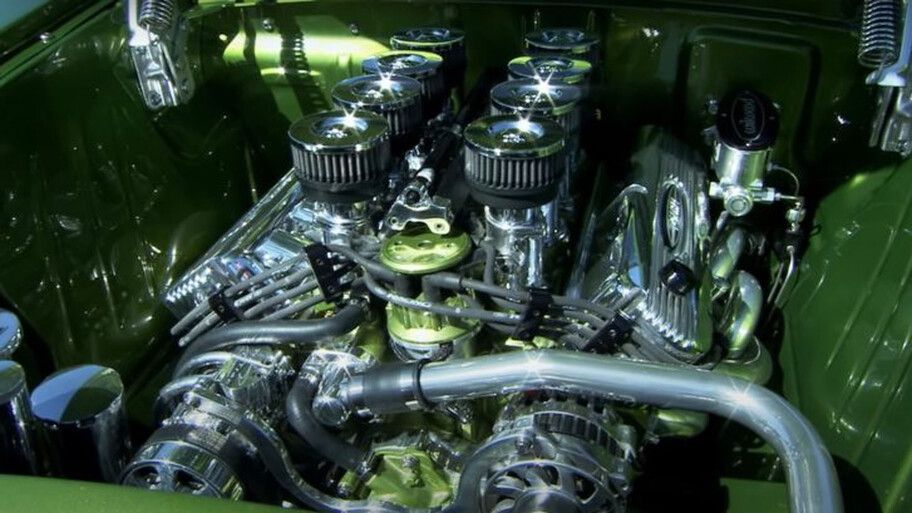 Claramente puede verse un esmero en los cromos y no pueden pasarse por alto las enormes llantas, así como también el trabajo de suspensión neumática para llevarlo casi hasta el piso.