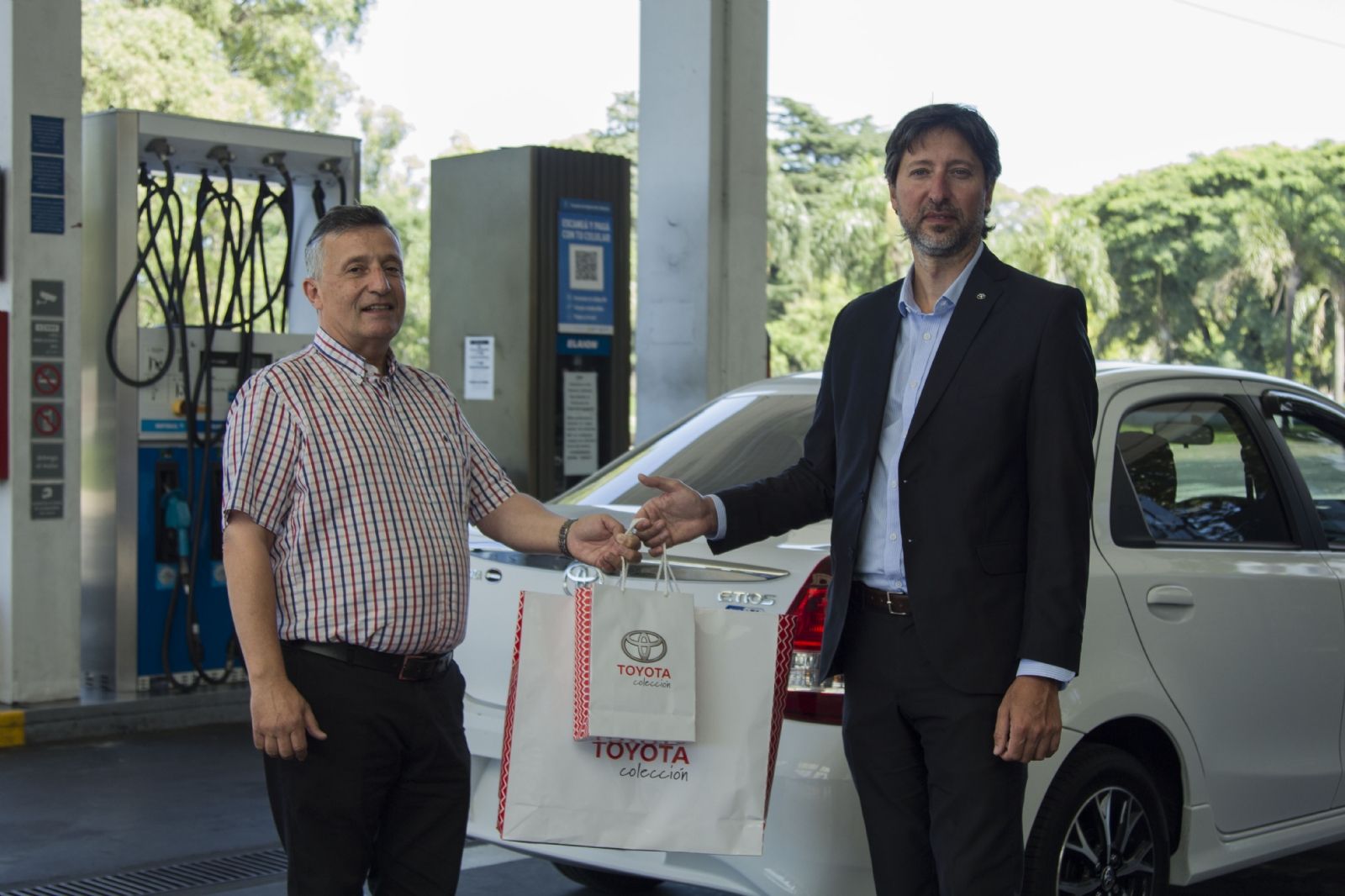 Julio Enrique Valcelli, de la provincia de Buenos Aires, fue el primer cliente en adquirir el vehículo Etios Sedán con el Sistema de GNC. Para reconocerlo, Julio fue recibido en la estación de servicio de Saavedra (en Balbín 4491) por ejecutivos de YPF y Toyota.