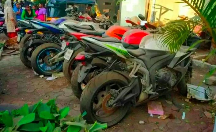 La idea no es lastimar a nadie, pero muchos y muchas llorarán al ver estas imágenes: decenas de miles de euros por modelo, miles de caballos de fuerza juntos, amontonados entre si expuestos al calor y el smog de la India. Esto también sucede en la comisaria de Andheri, cerca de Mumbai, donde muchos motociclistas han dejado sus motos para que se pudran, convirtiendo el lugar en un auténtico cementerio de motos.
