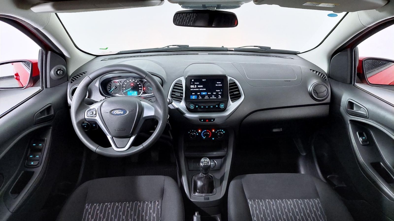 En cuanto al confort, encontramos asientos tapizados de tela con ajuste manual, aire acondicionado, cierre centralizado con comando a distancia, volante multifunción con ajuste en altura, vidrios delanteros y traseros eléctricos, entre otros detalles.