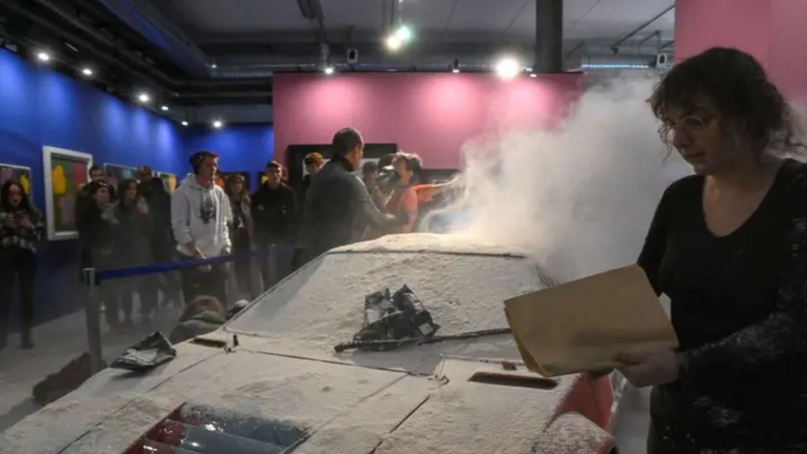 Parece extraño decir que no nos sorprende tanto esto, pero es así. Ya es moneda corriente que las maneras de protesta para visibilizar los problemas que conciernen al medioambiente tengan lugar en museos y salas donde se exhiben diferentes obras de arte. Un vehículo deportivo no fue la excepción.