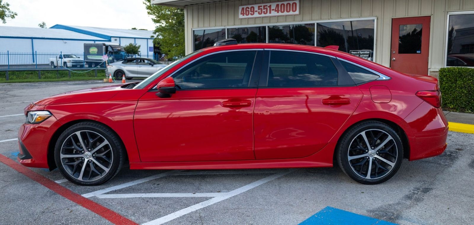 Respecto a la unidad en particular, es un Honda Civic sedán color rojo. A nivel mecánico el auto está impulsado por un motor 1.5 turboalimentado de cuatro cilindros, mientras que la transmisión está constituída por una caja automática del tipo CVT. El precio inicial de este Civic es de 17.900 dólares.