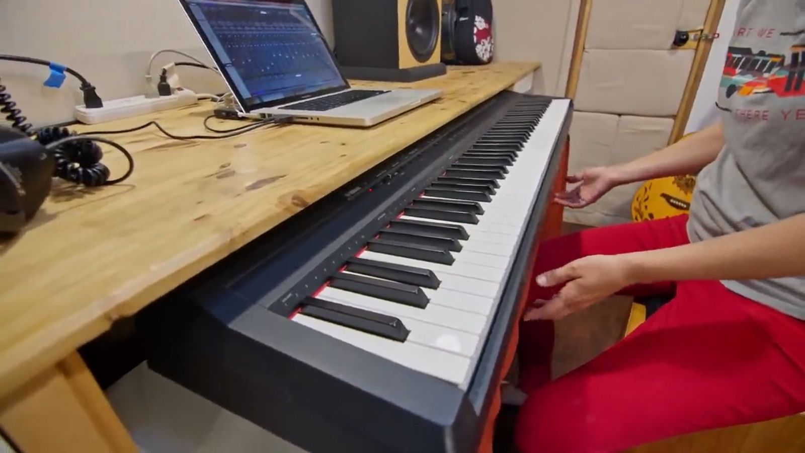 Una vez que pasamos la zona de la cocina, al costado nos encontramos el baño con una ducha e inodoro. Si seguimos el pasillo, nos adentramos ya en la zona del estudio de música, elaborado con materiales aislantes propios de una sala con estas características. Además, el estudio lo componen once instrumentos, entre ellos guitarras, teclado, saxofón, un acordeón y una flauta.