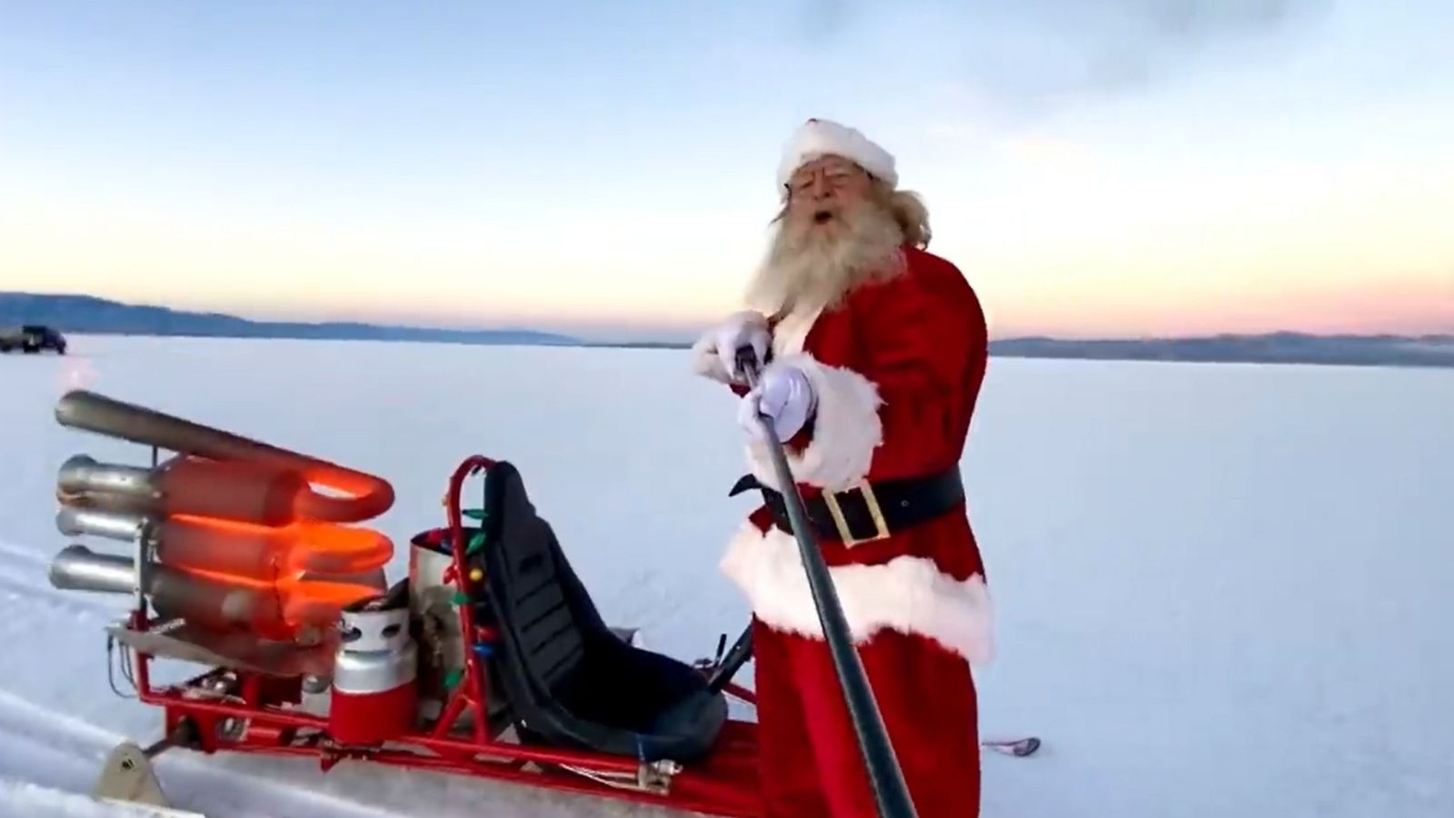 Papá Noel viene en camino en su trineo… propulsado por tres motores