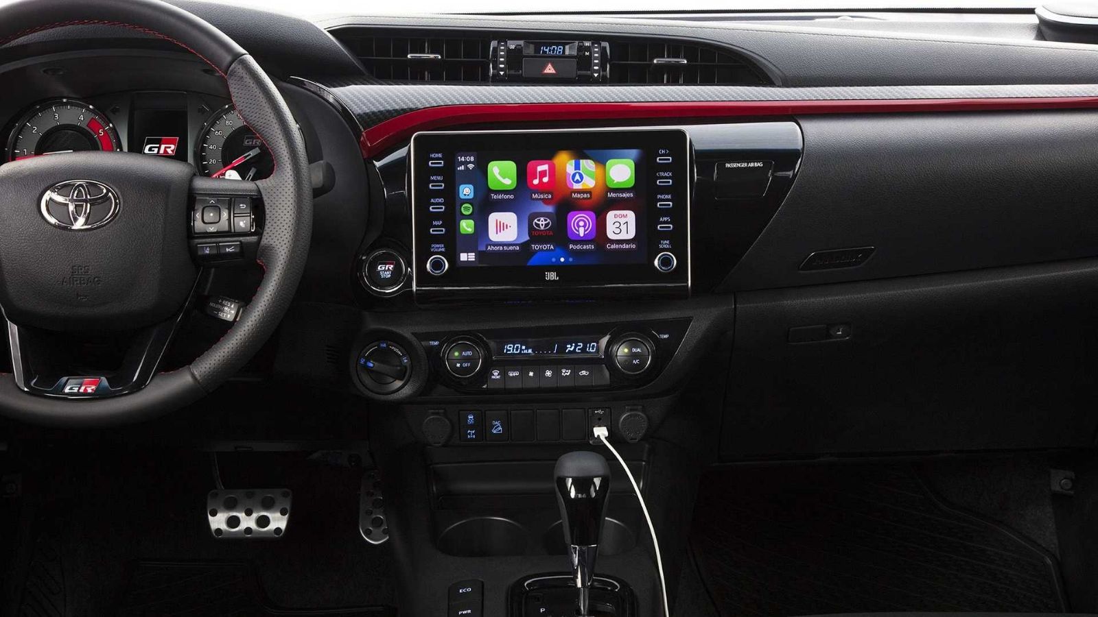 La estética interior de la nueva Hilux GR-S combina rasgos deportivos con el confort característico de Hilux.