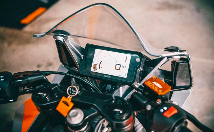 Por otra parte, el carenado fue renovado por completo, incorporando soluciones aerodinámicas y estéticas inspiradas en su hermana de competición, la KTM RC16. Para esta tarea se utilizaron las mismas tecnologías de simulaciones CFD (dinámica computacional de fluidos) que se utilizan actualmente en los equipos oficiales de la marca en competencias de velocidad. La personalidad del frente de la moto se acentúa con una característica firma lumínica mediante leds de alta intensidad DRL para sus luces diurnas.