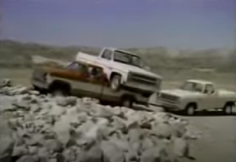 Durante los comerciales de esa época, Ford mostraba la fortaleza de sus pick-ups remolcando varias Silverado en una montaña de piedras, mientras llevaba una camioneta de Chevrolet montada sobre la caja de forma transversal.