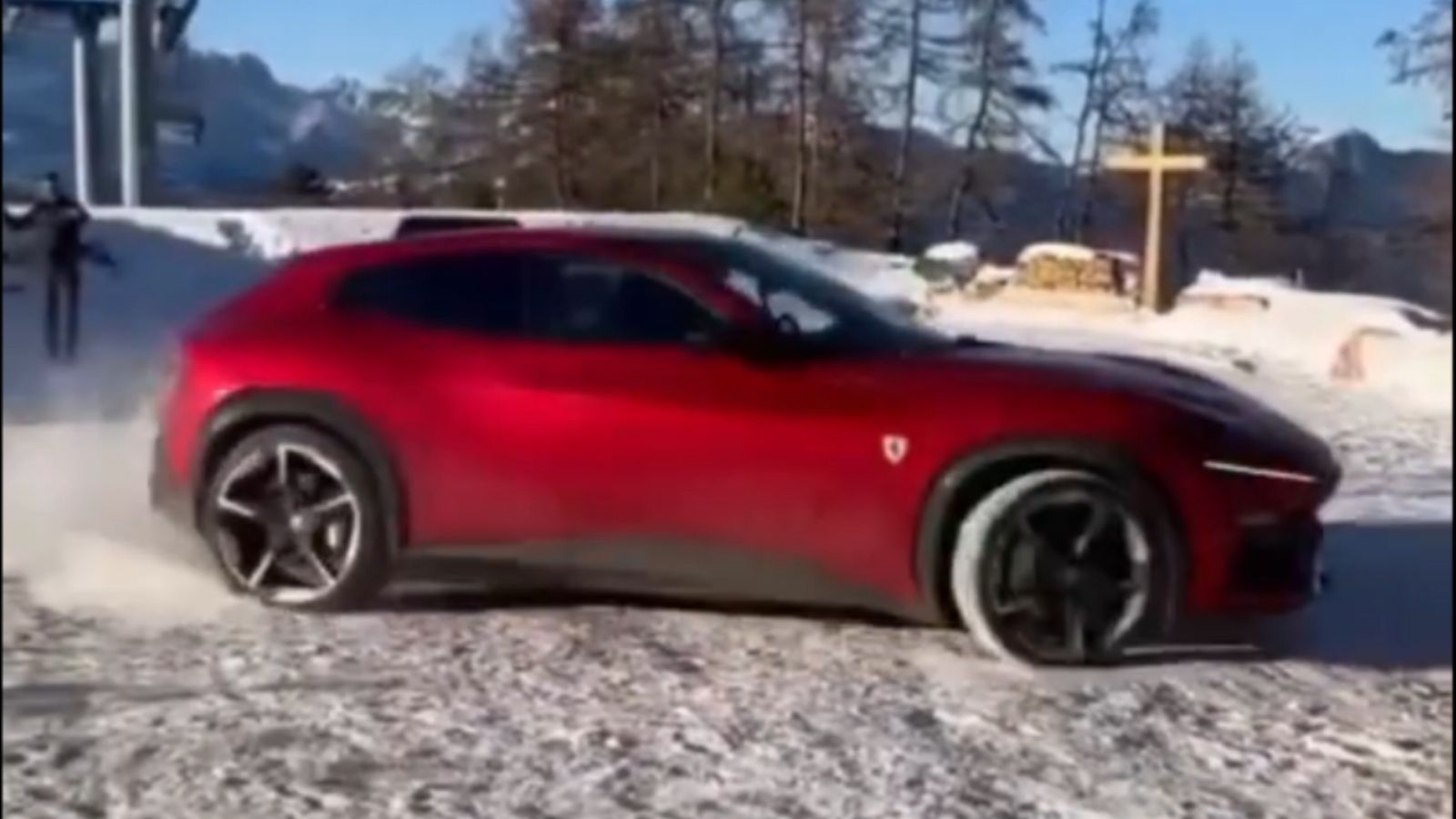 Mirá este increíble Ferrari Purosangue derrapando en la nieve