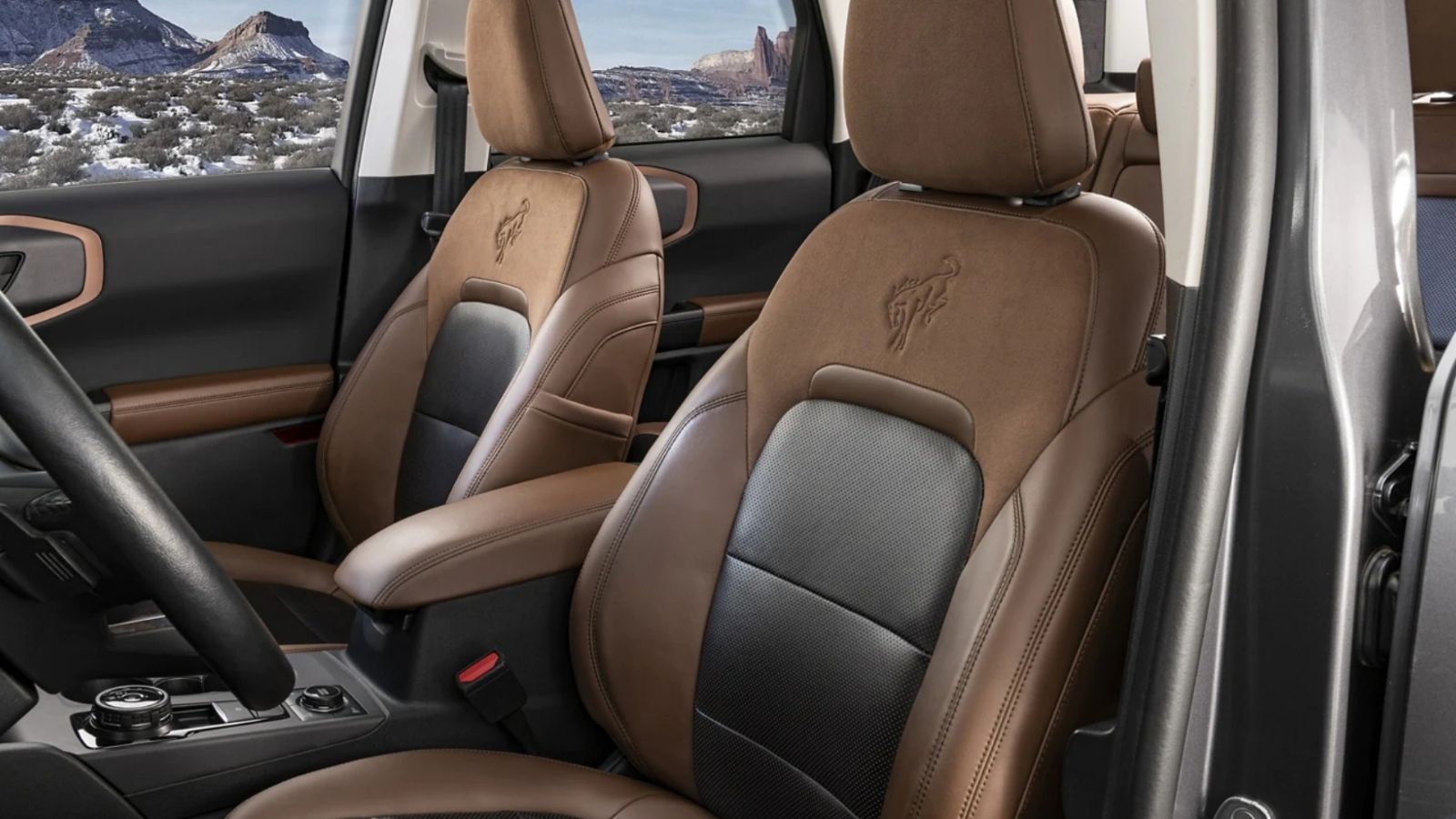 En líneas generales, algunos de los elementos que incorpora el Ford Bronco Sport en Estados Unidos son asientos de tela o cuero perforado con calefacción, panel instrumental con pantalla LCD a color de 4,2 o 6,5 pulgadas, techo corredizo, sistema multimedia SYNC3 con pantalla táctil de 8 pulgadas compatible con Apple Car Play y Android Auto, airbags frontales para el conductor y pasajero, airbags para las rodillas del conductor y bolsas de aire laterales montadas en los asientos delanteros y cámara de 180 grados.