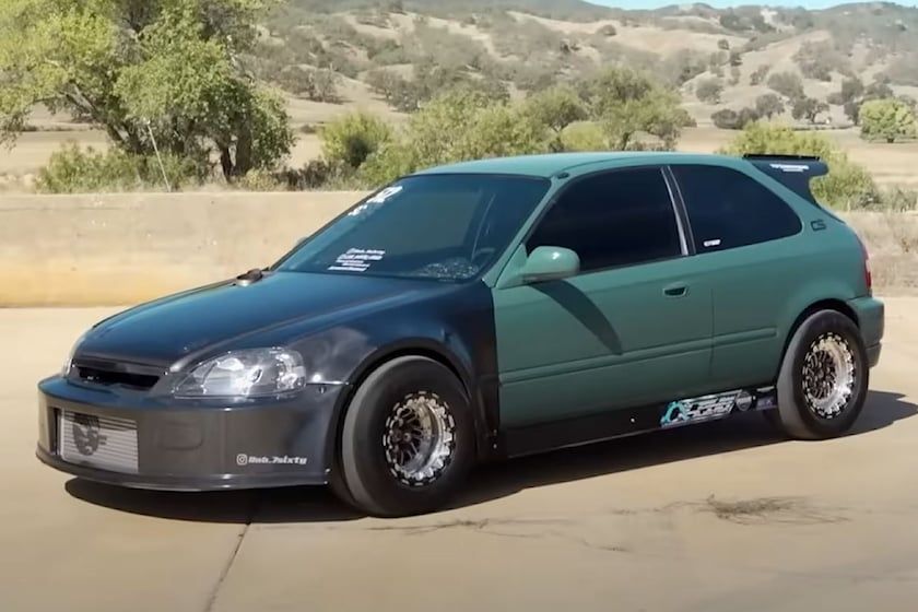 En el caso del Honda Civic, la unidad en cuestión pertenece a la generación llamada EK con carrocería de tres puertas, pero bajo el capot esconde el mismo motor 2.0 de cuatro cilindros que utiliza el Civic Si, pero que gracias al turbocompresor y una serie de mejoras la potencia que desarrolla es de 900 HP, que son enviados a las cuatro ruedas mediante una caja de cambios secuencial de cinco velocidades. Y según su dueño, el auto pesa unos 1.100 kilos, con lo cual las aceleraciones deberían ser bestiales con esta relación peso/potencia.