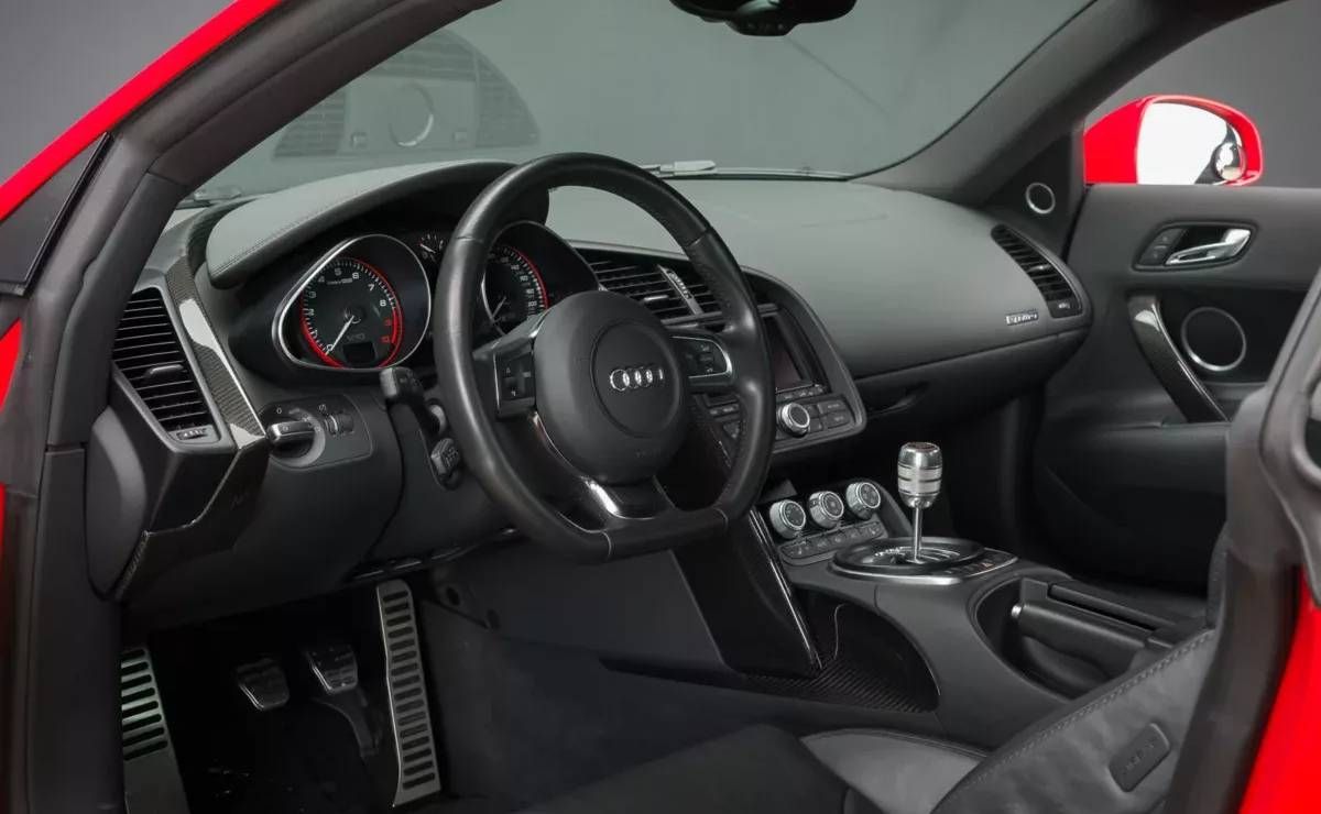 El Audi recorrió apenas 14.000 millas desde que salió del concesionario hace 11 años, y dentro de su equipamiento encontramos detalles como un equipo de audio Bang & Olufsen, pantalla táctil, control de crucero, climatizador automático, asientos de cuero con regulación eléctrica y mucho más. ¿Cuánto pagarías por este Audi R8?