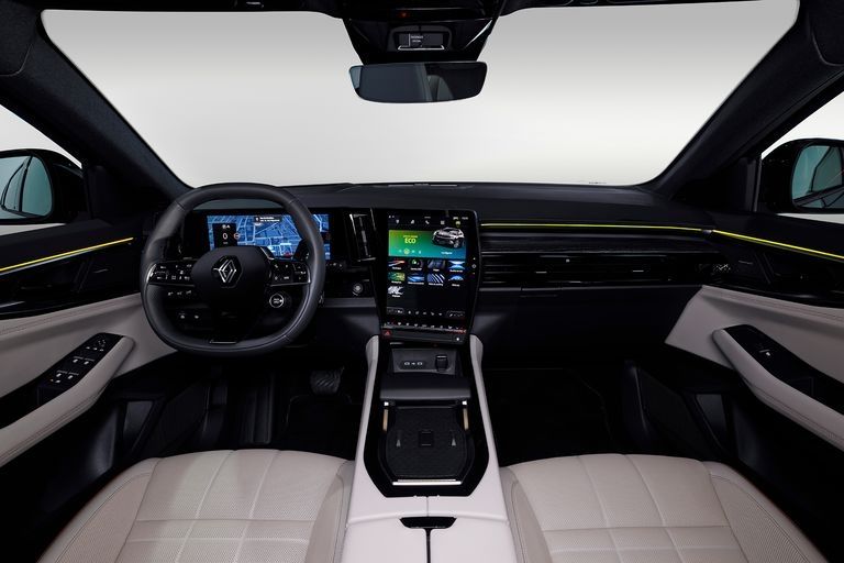 En el habitáculo el Renault Espace también toma la base del Austral (modelo con el cual comparte diversos componentes de la carrocería) y de esta forma hay un salto notable en materia de tecnología y terminaciones frente a la generación anterior. El sistema multimedia se proyecta en una pantalla de 12 pulgadas en formato vertical, mientras que el cuadro de instrumentos también es digital y ofrece varias configuraciones.