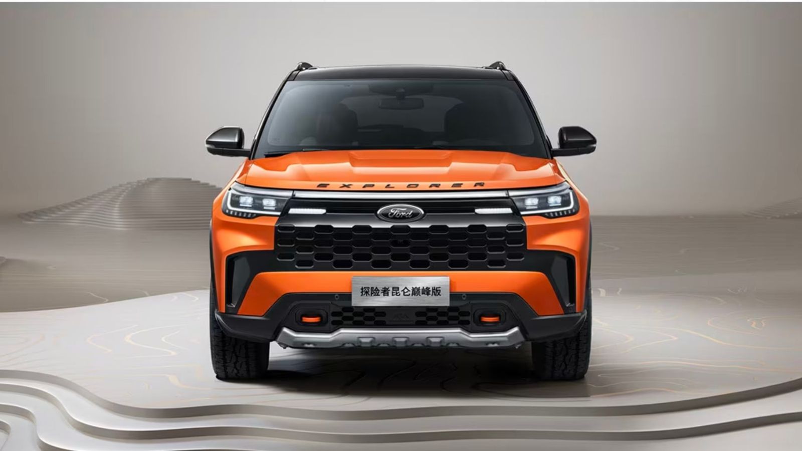 Si trazamos una comparación entre ambas líneas, la versión china de la Explorer luce un poco más agresiva, donde se destaca la parrilla ancha con un diseño diferente y faros auxiliares de LED que toman protagonismo en la zona central de la misma. En esta versión, el paragolpes presenta un tratamiento específico con molduras y la presencia de ganchos de remolque de color naranja, haciendo juego con el resto de la carrocería.