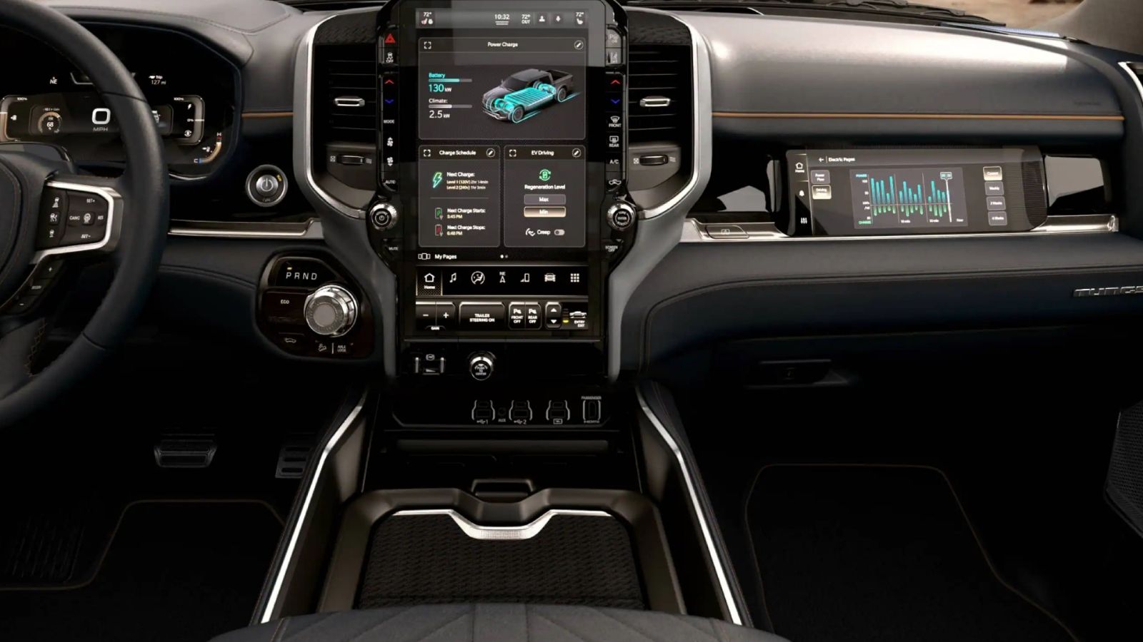 En el interior, se espera que la revolución tecnológica llegue a la marca con la 1500 REV como pionera. Inluirá detalles en el habitáculo como por ejemplo estaciones de carga para dispositivos móviles inteligentes, sistema multimedia con pantalla táctil de 14.5 pulgadas, panel instrumental digital con pantalla de 12.3 pulgadas frente al conductor y otra pantalla táctil disponible de 10.25 pulgadas para el pasajero del asiento delantero.