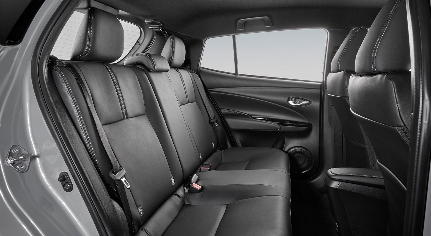 En seguridad, Toyota ofrece para la versión base del Yaris alarma e inmovilizador, siete bolsas de aire (dos frontales, dos laterales, dos del tipo cortina y una de rodilla), sistema de monitoreo de presión de neumáticos y sistema Isofix para sujetar sillas infantiles.