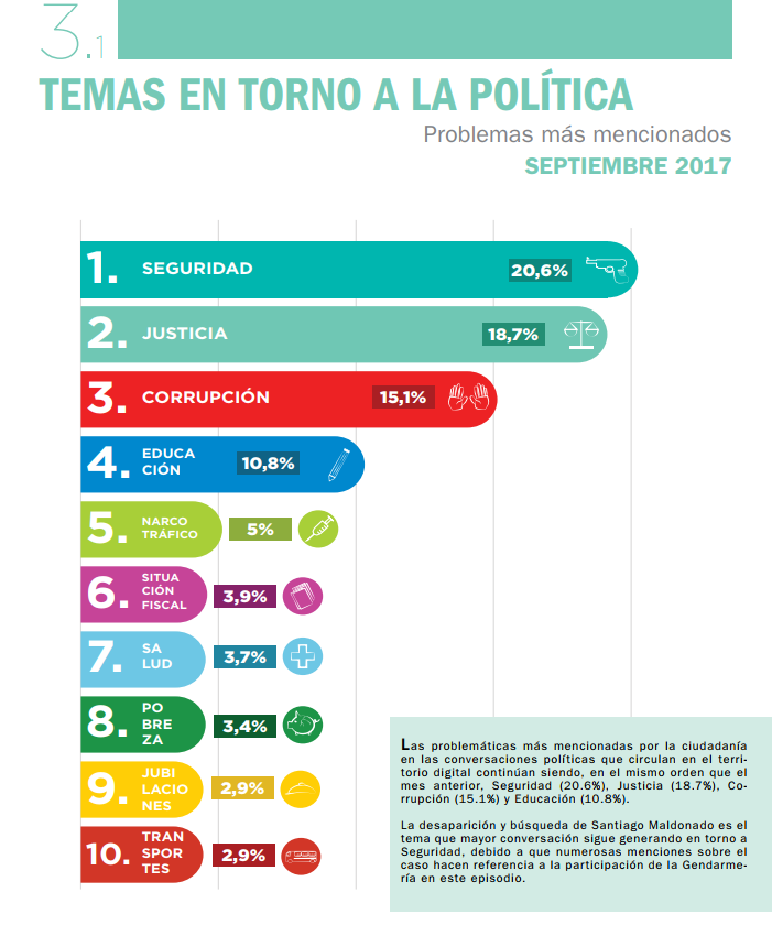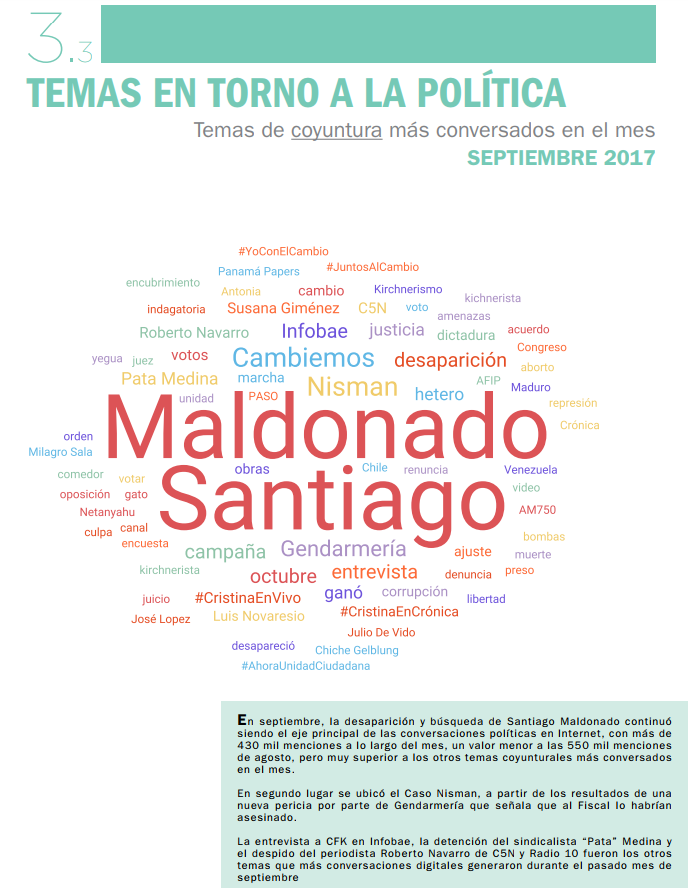 Definitivamente, la desaparición de Santiago Maldonado es el tema más relevante de la política argentina por estos días. Así lo demuestran los estudios realizados por la Fundación CiGob desde su informe periódico Interbarómetro. En los resultados de setiembre pueden observarse estos resultados que verás abajo y, además, su contraste con agosto.