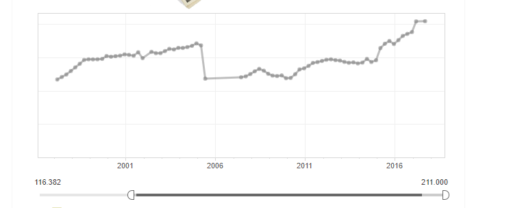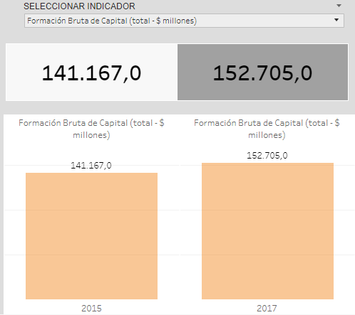 La Formación Bruta de Capital es un indicador complejo y a la vez,importante. Comprende la variación de los activos producidos que se destinan a la producción durante más de un año. En líneas generales, la parte de la producción se destina a la inversión con el fin de poder producir mayores cantidades. Este indicador muestra una leve mejora en los dos años transcurridos desde que empezó la era Cambiemos (datos de la Dirección Nacional de Cuentas Nacionales del INDEC) :