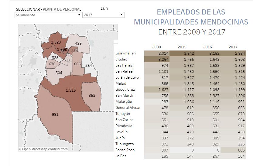 Evolución del empleo municipal en cada departamento de la provincia