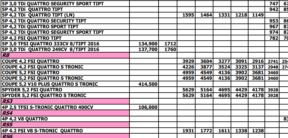 Revisá el listado con los valores de automóviles y camiones, y comparalos con los valores de los meses anteriores.