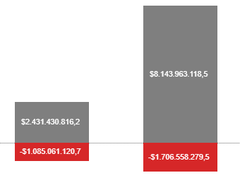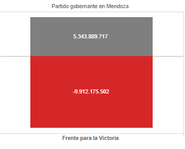 El siguiente cuadro visualiza por un lado, el déficit acumulado (rojo) en todos los meses gobernados por Celso Jaque y Francisco Pérez, y en gris, las cifras correspondientes a todos los meses en que el ejercicio cerró con superávit. Los números en rojo prevalecen en las administraciones peronista en la provincia.