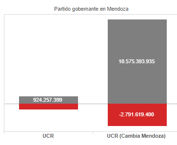 A nivel partidos políticos y contabilizando, en este caso, los años de gobierno de Julio Cobos más los registrados hasta el momento por Alfredo Cornejo, prevalecen los balances mensuales con superávit.