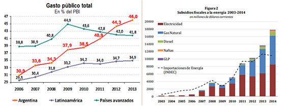 Ya en 2009, el subsidio a la energía contribuyó a que Argentina pasara del superavit al déficit. "Millones de argentinos que iban a quedarse sin jubilación, por aportes insuficientes, la están recibiendo. También 9,5 millones de hogares, sin distinción de origen social, pagan la electricidad a precio subsidiado. Ambos factores impulsaron el gasto público más que otros y se combinaron con la desaceleración del incremento de ingresos tributarios de 2009, crisis mundial mediante, para acabar con el superávit fiscal del que la Argentina se había enorgullecido tras salir de su crisis, entre 2003 y 2008", escribía (en 2009) el periodista Alejandro Rebossio para La Nación. A partir de ese momento. El dato es clave por que a partir de ese momento Argentina empezó a tener el crecimiento del gasto público más alto del mundo y dentro del gasto, desde 2009 se dispararon los subsidios a la energía: