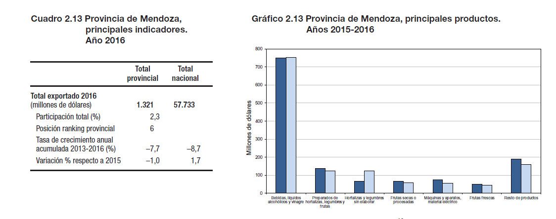 En Mendoza hubo una caída de 1% en las exportaciones en 2016 respecto de 2015: