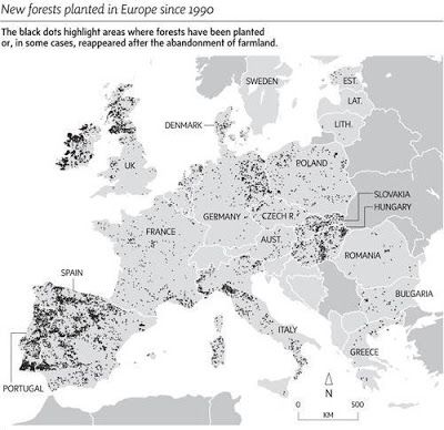 En un informe reciente, publicado por la Conferencia Ministerial para la protección de la Foresta en Europa se comprueba como algunos países - España e Irlanda por ejemplo - han doblado su superficie forestal.