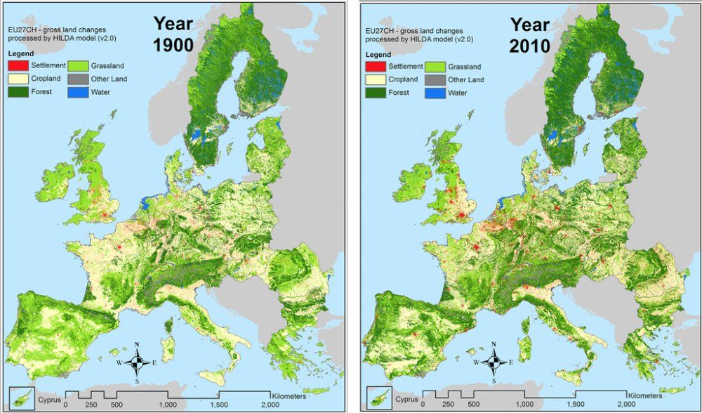 El mapa del reverdecimiento de Europa