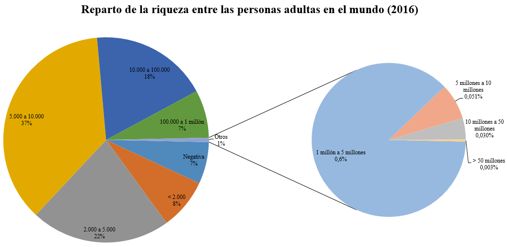 Hoy podemos decir que la economía se está recuperando teniendo en cuenta que el PIB mundial crece un 3% anual. Según Credit Suisse, la riqueza aumentará el 31% los próximos cinco años, a razón de un 5,5% anual. De todas formas, el PIB no avanza a la misma velocidad que aumenta la población mundial, lo que hace que la riqueza -que incluye activos financieros, activos no financieros y deuda- tenga que repartirse entre más personas. Igualmente, si nos fijamos en las situaciones particulares de cada país o ciudad, el crecimiento económico no lo perciben igual todas las personas, ya que la crisis de 2008 fue determinante para consolidar un proceso de polarización de la riqueza. Los desequilibrios económicos aumentan a un ritmo más acelerado del que sigue el crecimiento económico. ¿Se debe esto a que los que dominan la economía mundial tienen un plan para poseer más riqueza año tras año?