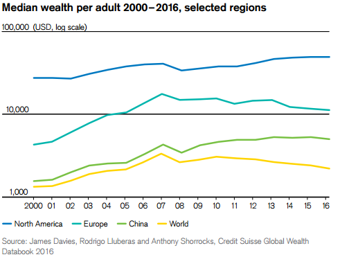 Es evidente que la riqueza de un territorio no debería medirse fijándonos solo en el PIB. En el caso de Barcelona, por ejemplo, el PIB crece trimestre a trimestre, pero el reparto es cada vez más desigual. Por este motivo, la división en percentiles de la riqueza a escala mundial es una forma para acercarse a su distribución real. Así, se puede observar que la riqueza a manos del primer percentil creció del 45,5% en 2008 al 49,8% en 2016, no muy lejos del 50,8% que se calcula actualmente. En otras palabras, 33 millones de personas -menos del 1% de la población adulta total- posee la mitad de la riqueza mundial; la otra mitad está repartida entre más del 99% de la población.