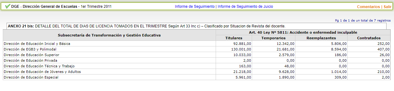En cambio para el caso de los docentes temporarios, el total de días de licencias del primer trimestre de este año ha sido el menor de los últimos cinco años tanto en la Primaria como en la Secundaria.