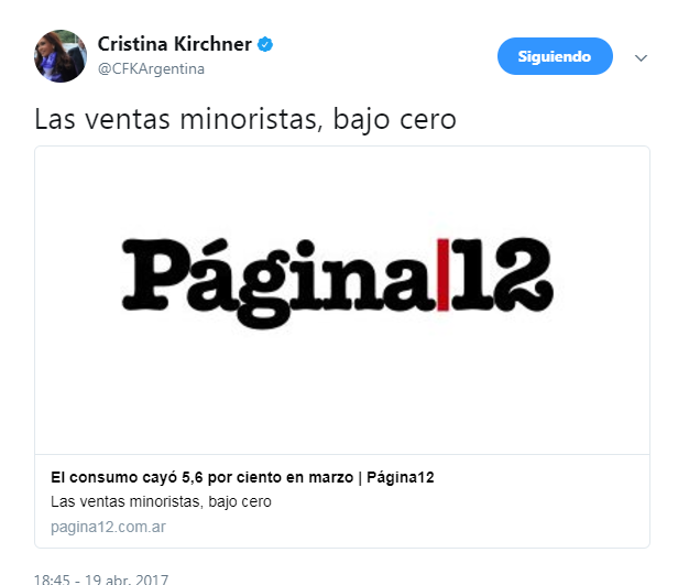 - Cristina Kirchner (@CFKArgentina) 8 de agosto de 2017
