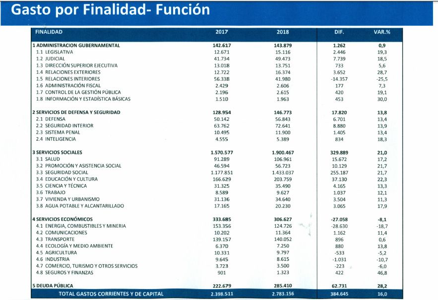 También que el gasto en subsidios se reduzca 16% y los servicios económicos a 12%, mientras que aumentarán las partidas para Infraestructura en 17% nominal, lo cual implica 2,2% del PBI.