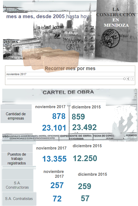A partir de marzo de 2017, la actividad de la construcción a nivel nacional comenzó a mostrar datos positivos en comparación con los meses del año anterior. Según el INDEC, en octubre de 2015 habían 455.447 trabajadores en blanco en todo el país. Dos años después la cantidad de trabajadores asciende a 458.212. Los permisos de edificación llegaban a 656.371m2 en noviembre de 2015 y exactamente dos años después cae a 596.345 m2.