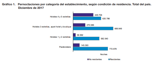 - A nivel nacional, las pernoctaciones en establecimientos hoteleros y parahoteleros se estimaron en 3,8 millones, 1,5% mayor que el mismo mes del año anterior.