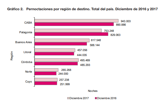 Creció la cantidad de noches de alojamiento. Mientras el promedio nacional de crecimiento de noches pernoctadas fue del 1,5%, la región de Cuyo registró un salto positivo entre 2016 y 2017 del 2,1%, cifra idéntica a la de Córdoba.