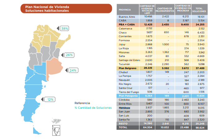 10- Viviendas para Mendoza: 3.937 sociales, 1.865 mejoramientos, 3.213 Procrear con un total de "soluciones" de 9.015.